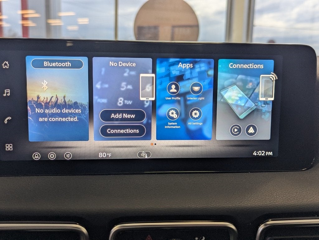 - Radio: AM/FM w/RDS/MP3 -inc: 4 speakers, 12.3" NissanConnect multimedia center display, Bluetooth® hands-free phone system, streaming audio via Bluetooth®, hands-free text messaging assistant, Siri Eyes Free, Google Assistant voice recognition, wireless Apple CarPlay and Android Auto and (2) front USB connection port (type C)